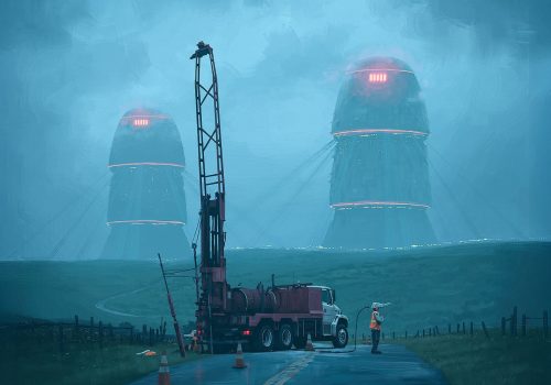 A surreal collage blends history with modern views, creating an artistic landscape where past and present converge in unexpected ways.
